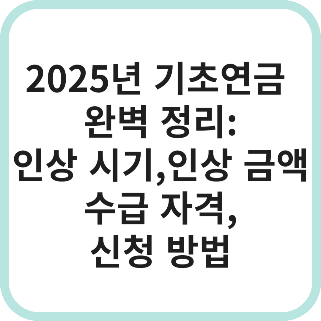 2025년 기초연금 완벽 정리: 인상 시기, 인상 금액, 수급 자격, 신청 방법