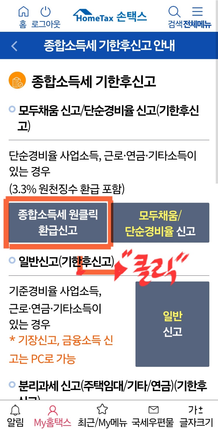홈택스 손택스로 종합소득세 원클릭 수수료 무료 (5년치 환급)