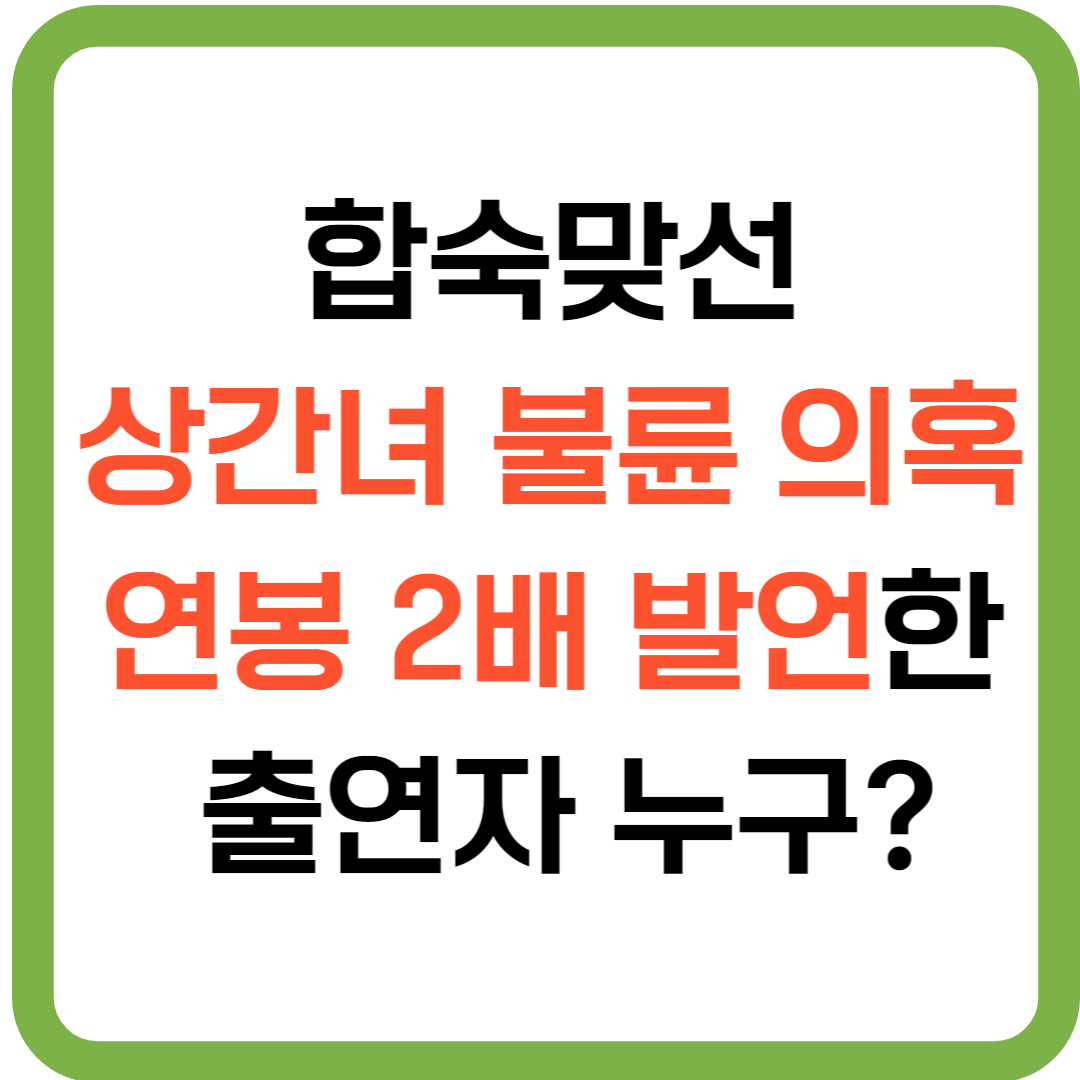 연애 예능 합숙맞선 출연자를 둘러싼 논란이 연일 온라인을 달구고 있습니다.방송 당시 화제가 됐던 ‘연봉 2배 남자 선호’ 발언이최근 제기된 상간 의혹과 맞물리며 다시 주목받고 있기 때문입니다.이번 이슈는 단순한 개인 논란을 넘어연애 예능의 신뢰 구조 전반을 건드리고 있다는 점에서 관심이 집중되고 있습니다.방송 속 이상형 발언, 당시 반응은 어땠나해당 출연자는 방송에서 직접적인 발언보다는어머니를 통해 이상형 조건이 전달됐습니다.✔ 본인 연봉의 2배 이상 수입✔ 깔끔한 외모와 인상이 조건은 방송 직후에도“현실적인 기준이다”와 “과한 요구다”로 의견이 갈렸지만,프로그램 흐름상 큰 논란으로 번지지는 않았습니다.상간 의혹 제기, 핵심 쟁점은?논란의 불씨는 외부 보도를 통해 커졌습니다.한 제보자는 과거 혼인 관계에..