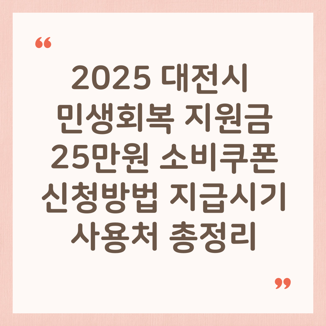 2025 대전시 민생회복지원금 소비쿠폰 지급시기 대상 사용처 신청방법까지