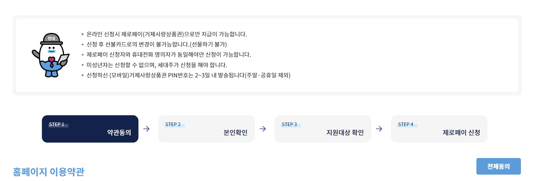 - 지급 수단으로는 모바일 거제사랑상품권 또는 선불카드 중 선택 가능.