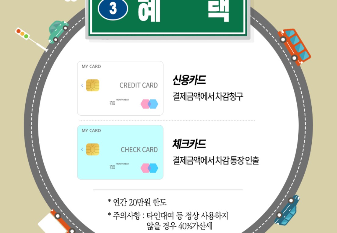 - 차량 조건: 배기량 1,000cc 미만의 경형 승용차 또는 승합차