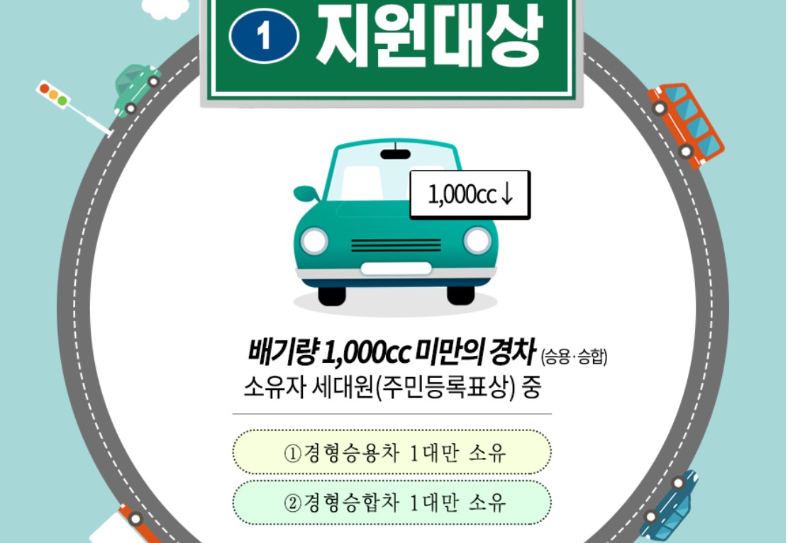 - 세대 조건: 주민등록표상 동거가족 기준으로 경형 승용차 1대 또는 경형 승합차 1대만 보유한 경우