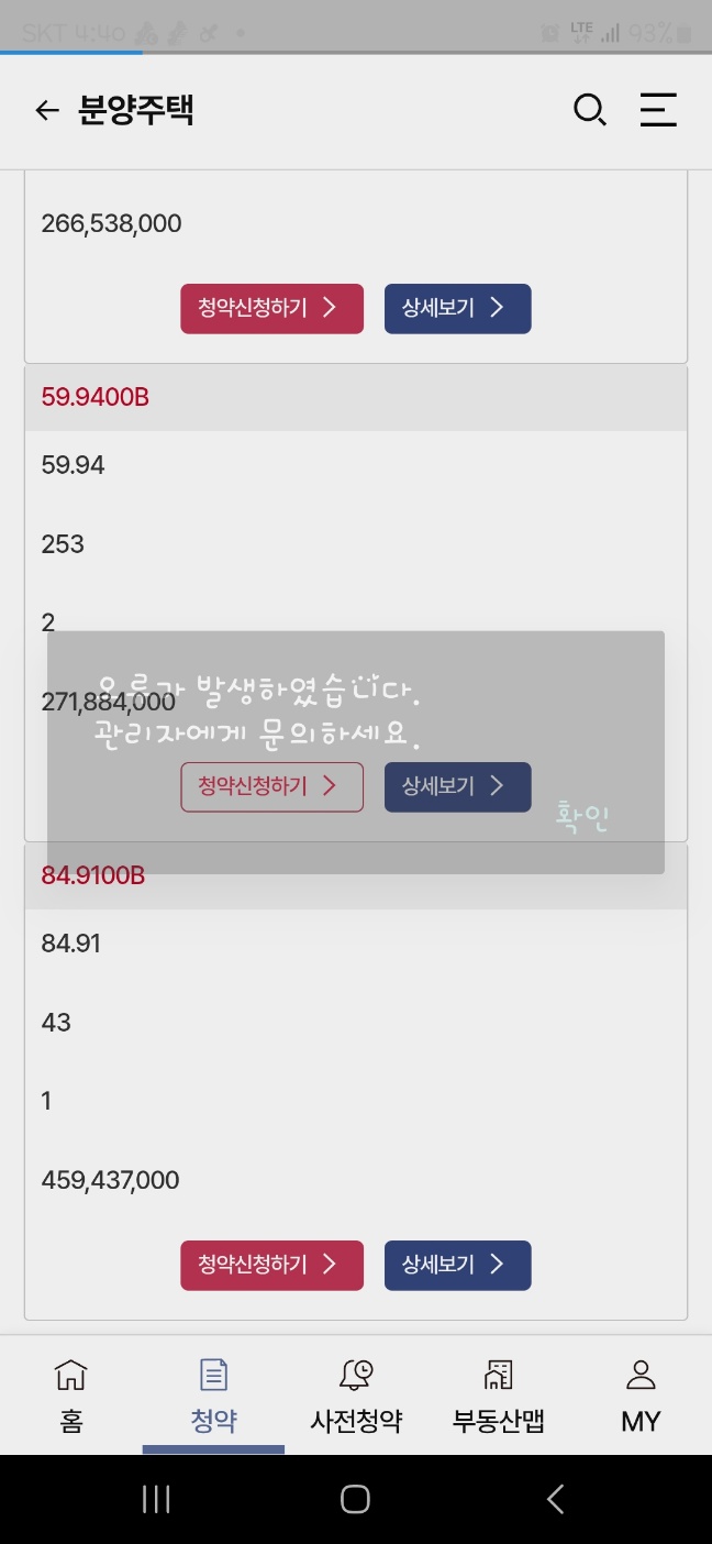 서버 과부하로 인해 로그인조차 되지 않거나, 사이트가 아예 로딩되지 않는 현상이 발생했습니다. - 청약신청 실패 사례 속출