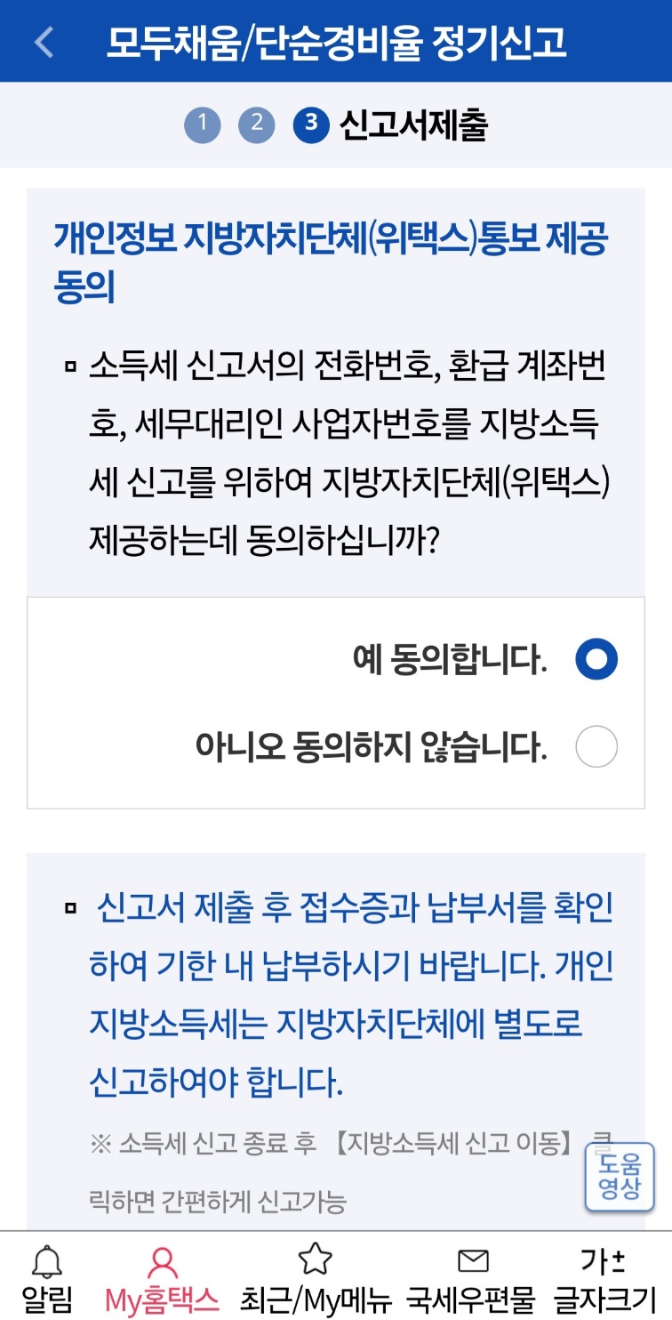 종합소득세 원클릭 신고하는 방법(모바일 손택스)