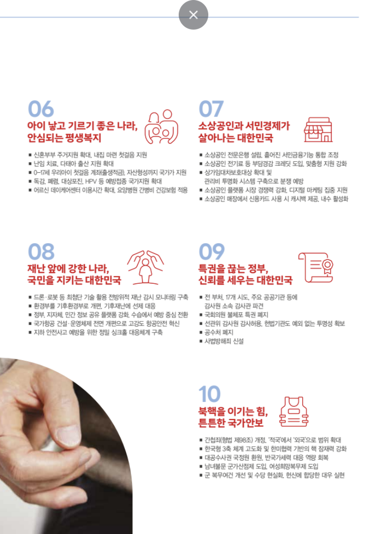 - 국회의원 정수 10% 감축: 국회의원 수를 10% 줄여 의회 기득권을 포기하고, 공공 개혁의 동력으로 삼겠다는 계획을 발표했습니다.