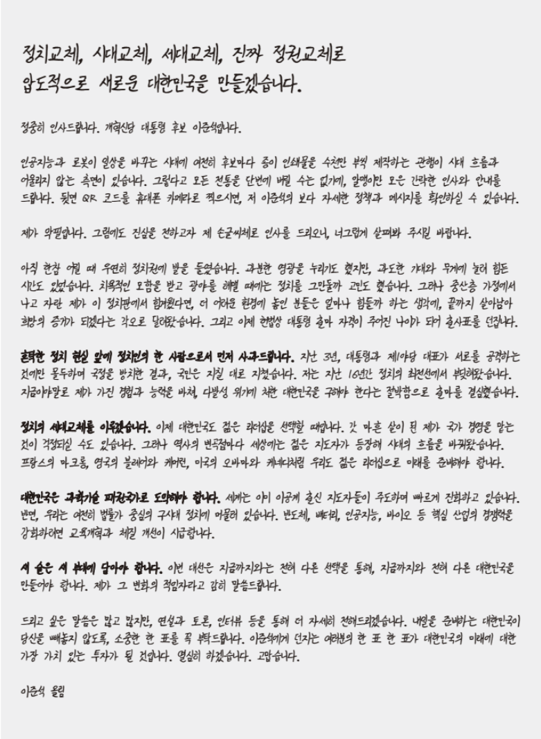 이번 포스팅에서는 이준석 후보의 프로필과 주요 정책 공약을 정리하여 소개합니다.