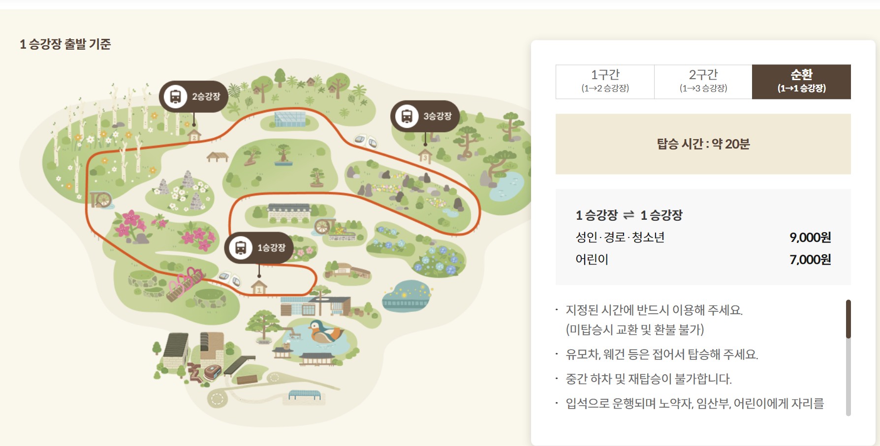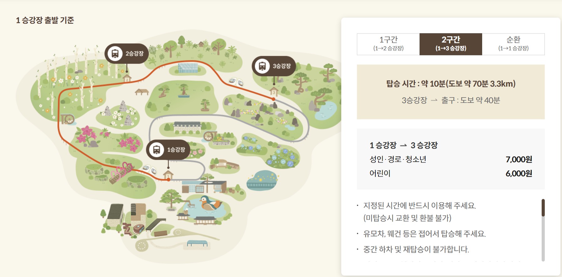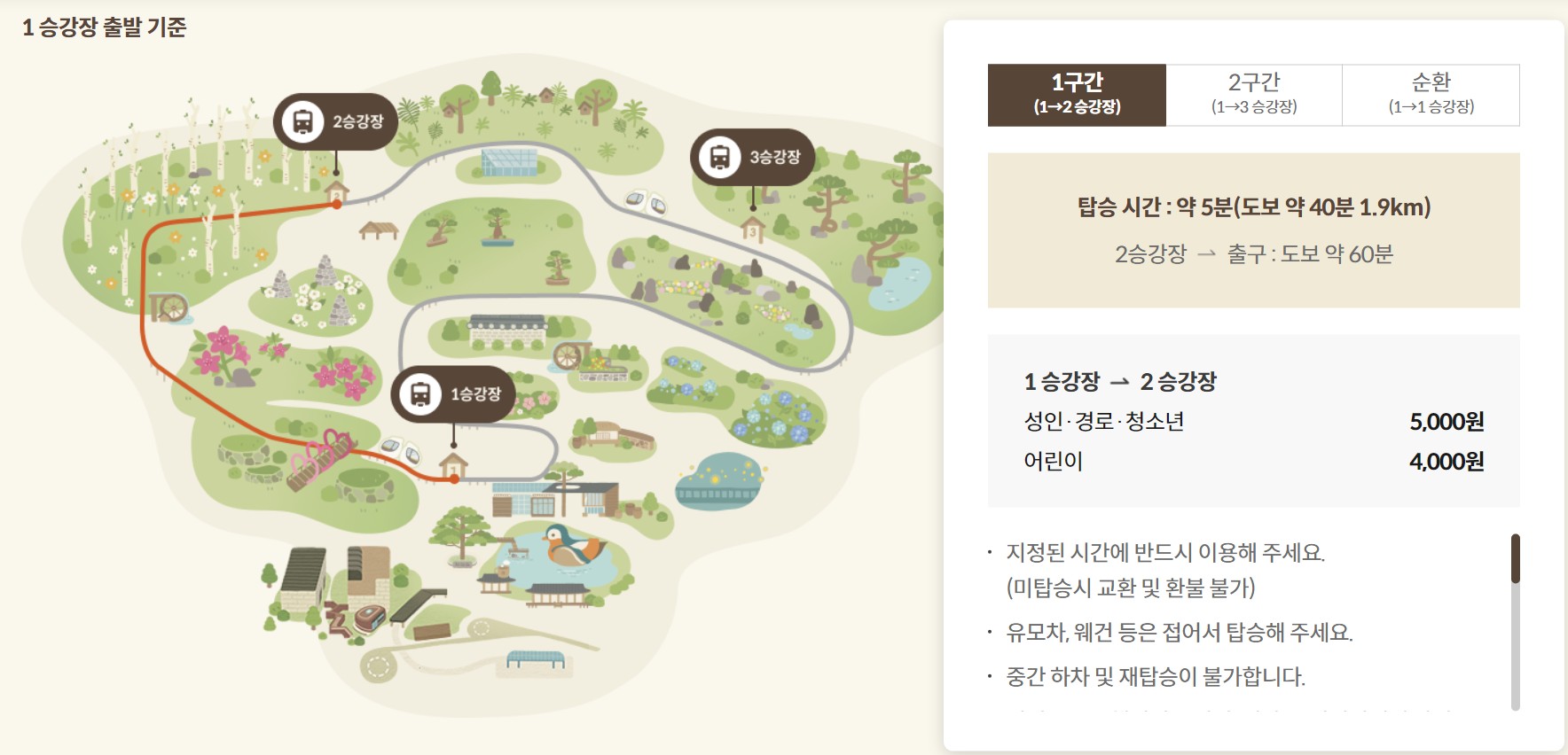 (각 승강장까지의 관람 시간이 상이하여 정문 매표소에서는 구매가 불가합니다.)