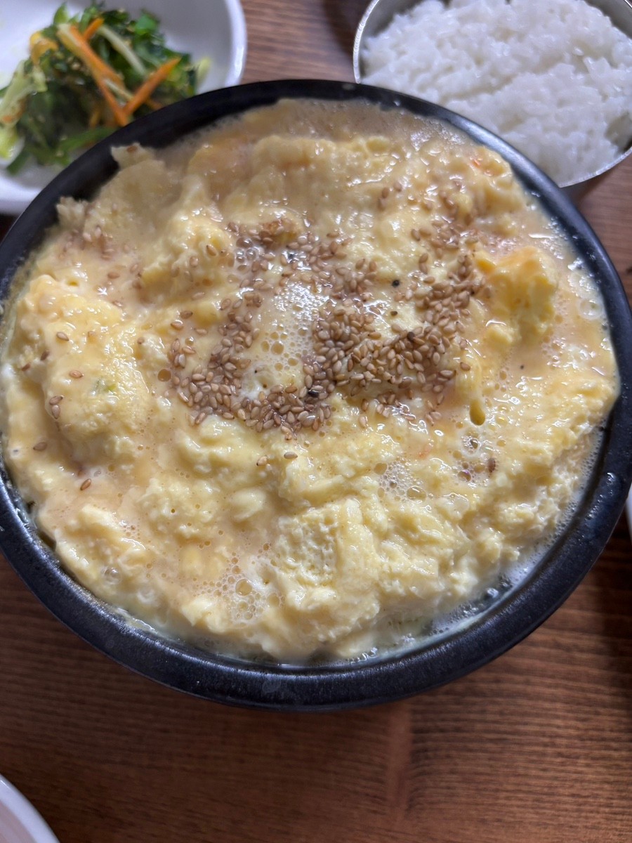 이곳의 계란탕은 부드러운 식감과 과하지 않은 간으로 소개되었습니다.