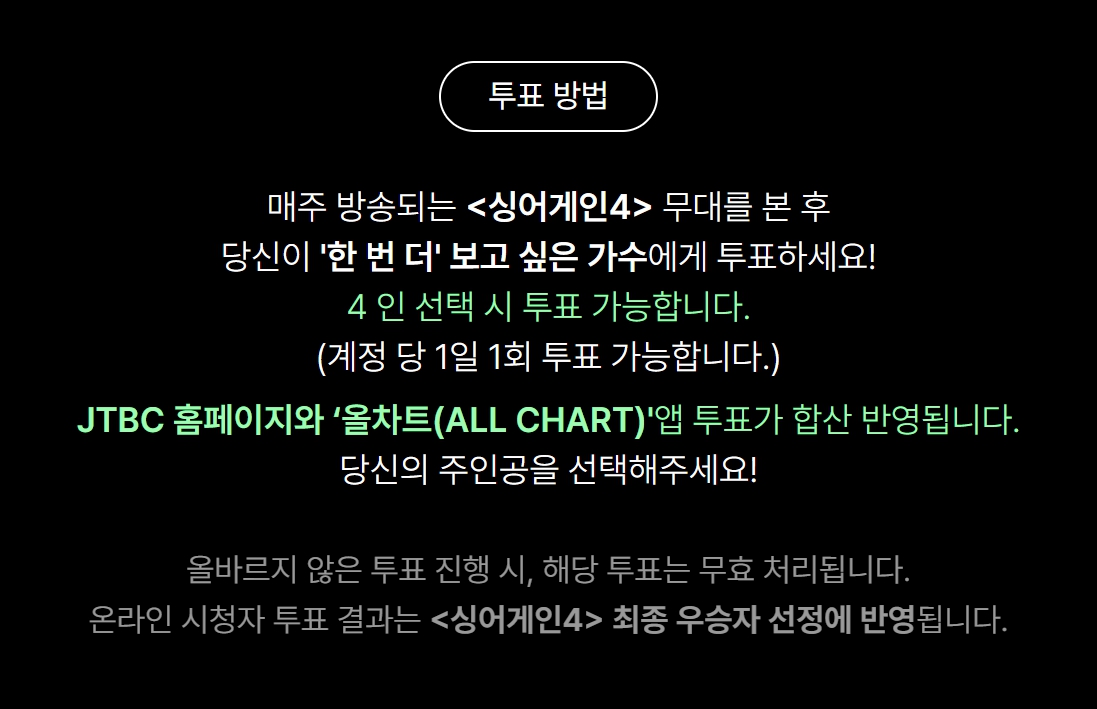 - 메인 화면에서 “싱어게인4 투표” 선택
