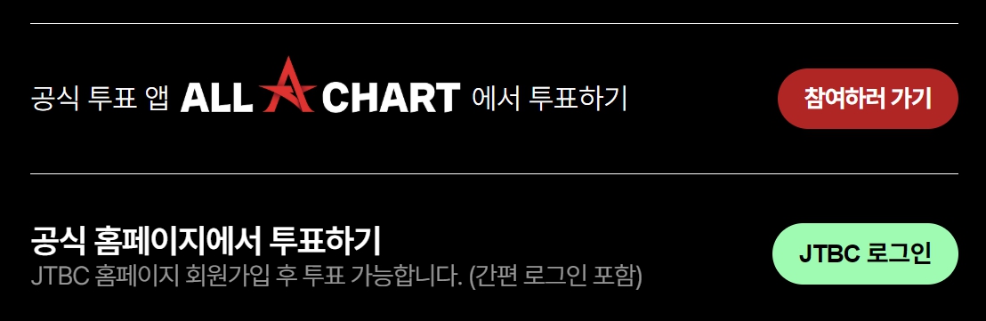 앱 투표는 JTBC 공식 웹투표와 통합 반영되어 한 화면에서 바로 참여가 가능해 편리합니다.
