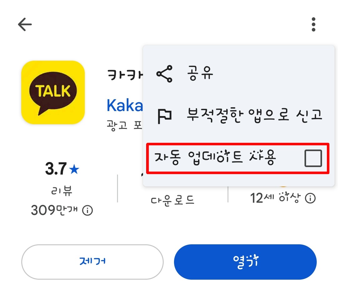 카카오톡만 자동 업데이트 해제하기