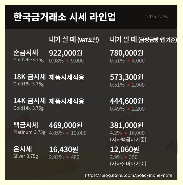 오늘 기준 국내 금 시세 정리 (2025.12.26)