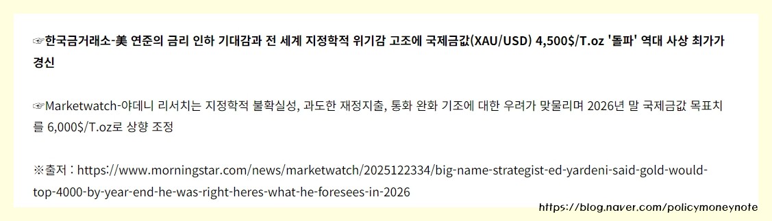 분명한 건 현재 금값이 금리·환율·지정학 리스크가 동시에 반영된 구간이라는 점입니다.