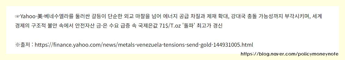 → 미국과 베네수엘라를 둘러싼 갈등, 에너지 공급 이슈 등이