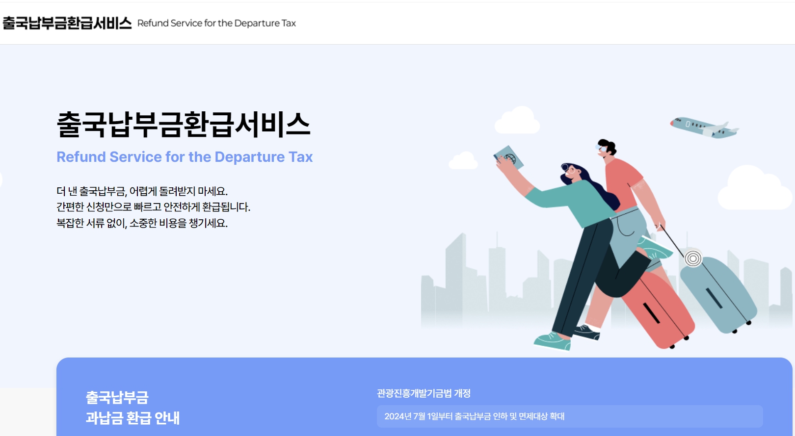 - 2024년 7월 1일 이후 항공권에 포함된 출국납부금을 납부한 모든 탑승객은 신청 가능합니다 .