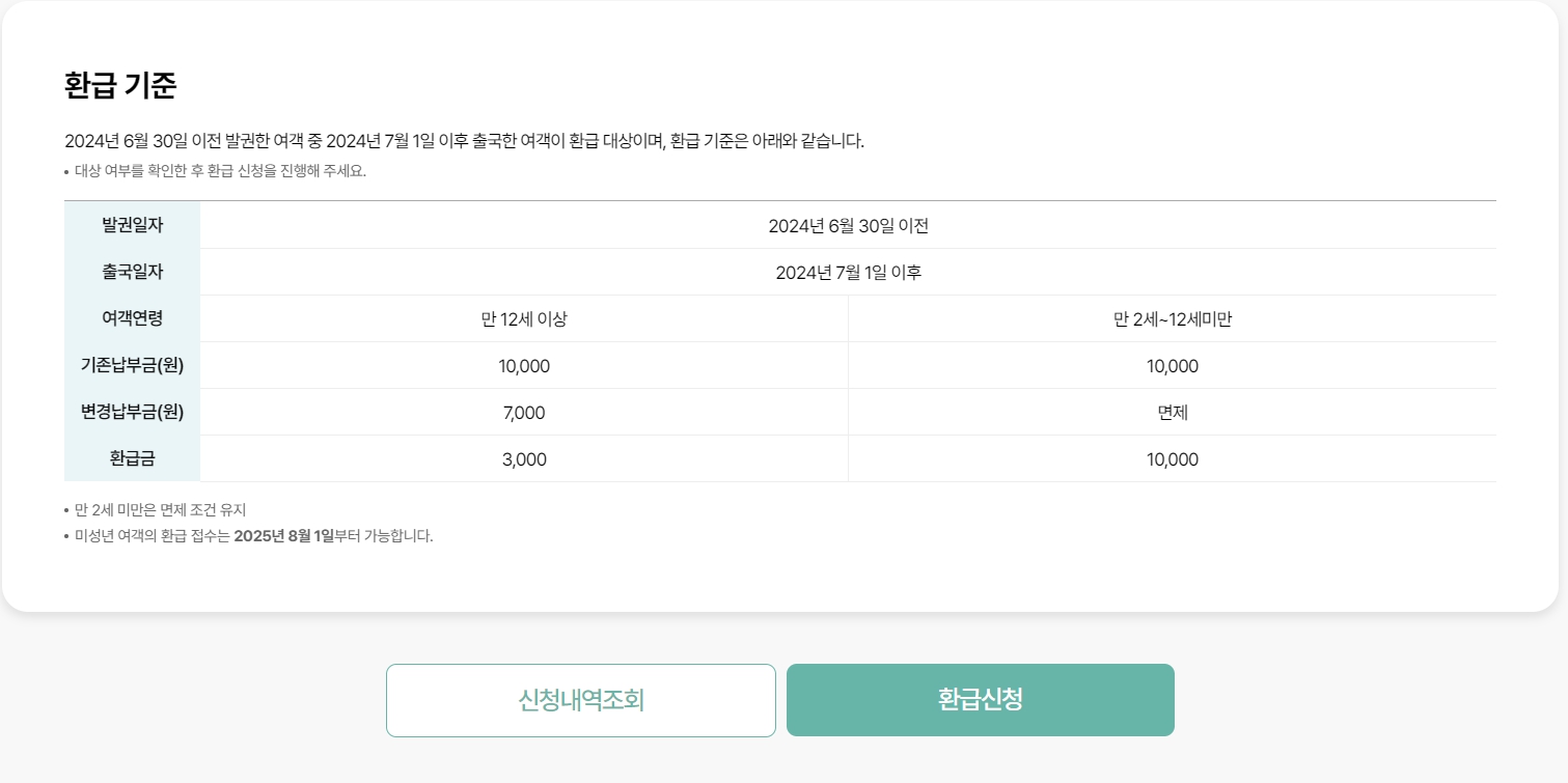 - 특히, 2024년 6월 30일 이전 발권 분도 일부(만 12세 이상 3,000원, 12세 미만 10,000원 기준) 환급 대상이 될 수 있습니다.