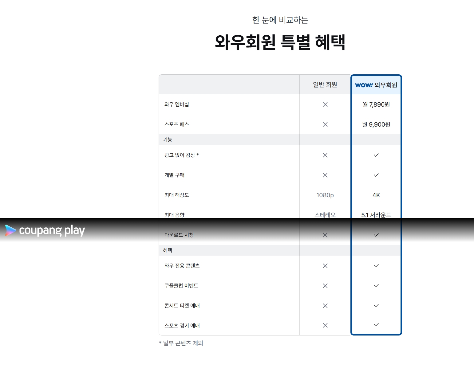 | 쿠팡 와우 멤버십 | 7,890원 |