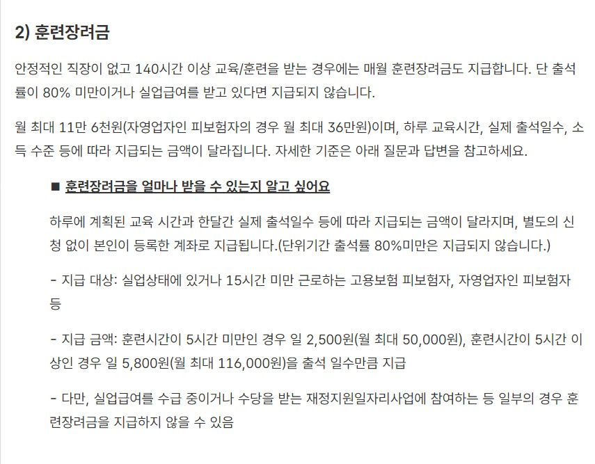 - 훈련장려금 월 최대 11.6만 원