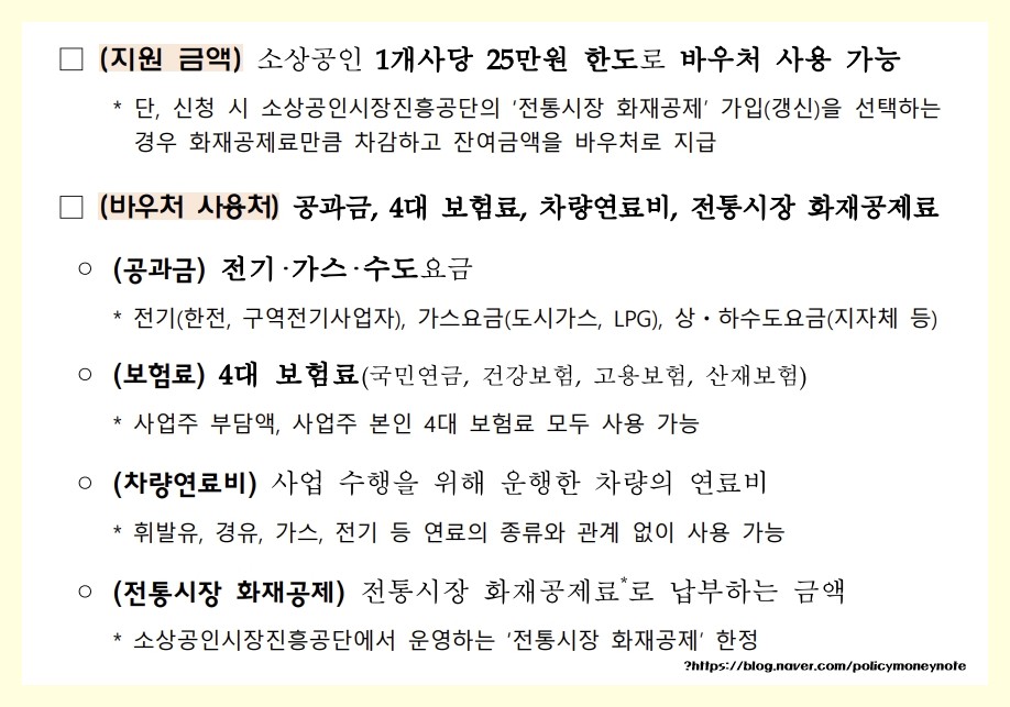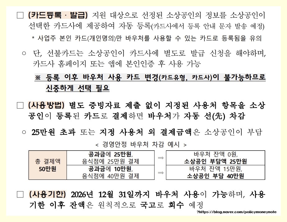 지정 사용처 외 결제 시 바우처 미적용되며 25만 원 초과 금액은 본인 부담입니다.