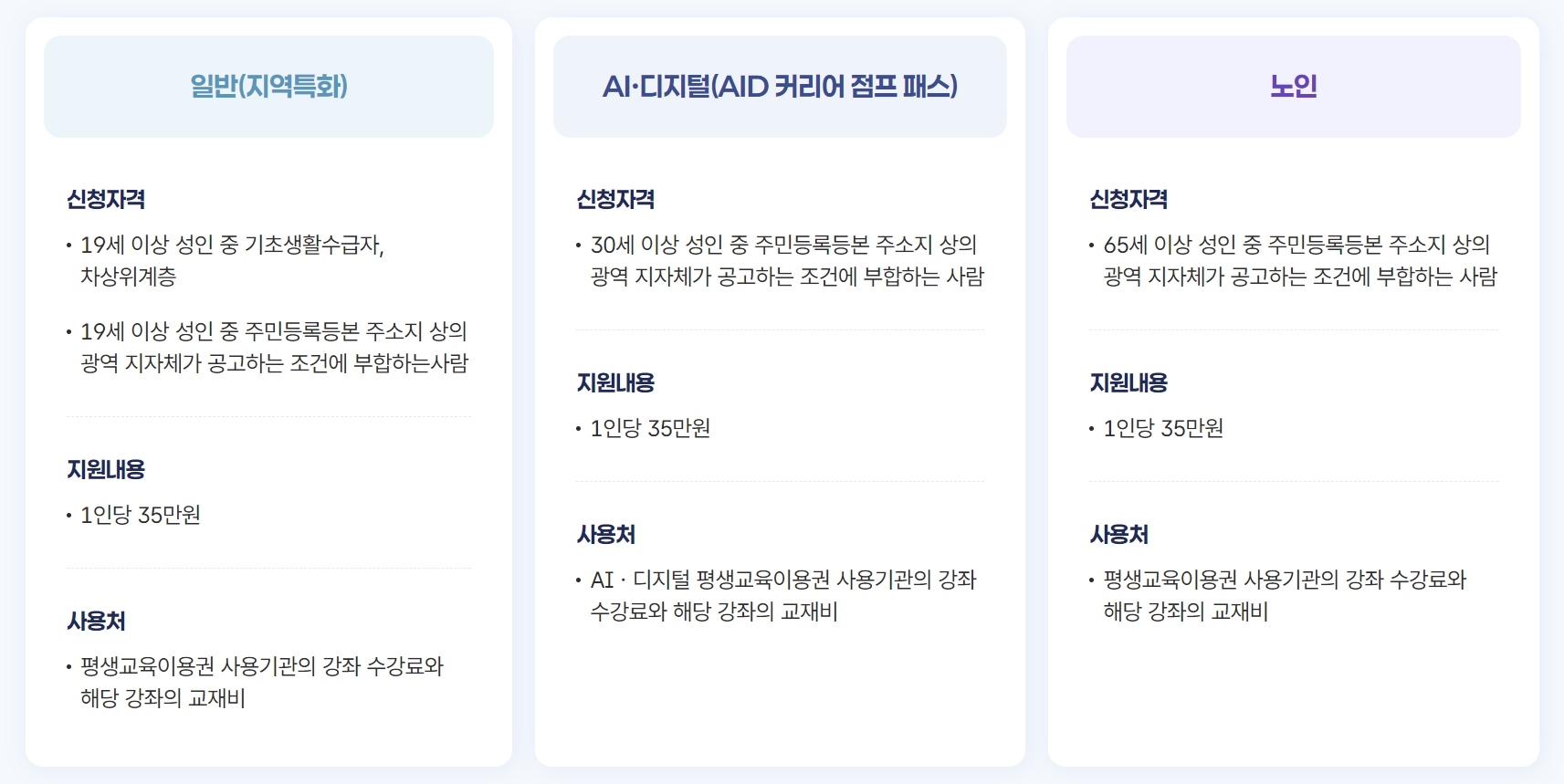 - AI·디지털 이용권: 만 30세 이상 성인의 디지털 역량 강화 지원